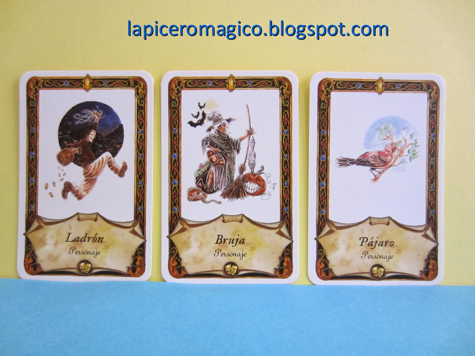 Como véis, los elementos más importantes de los cuentos de hadas tradicionales aparecen en la baraja, al estilo de las consideraciones de Vladimir Propp al respecto. Ya vimos en este blog un poco este asunto: Escribir cuentos con las cartas de Propp