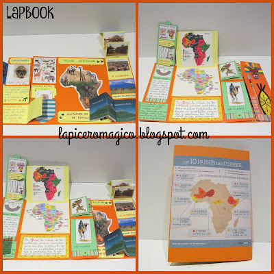 Las imágenes os dejo aquí corresponden a un Lapbook que hice sobre África, y es el que enseño a mis alumn@s para que lo vean y lo toquen. ¡Eso les anima a hacer los suyos!