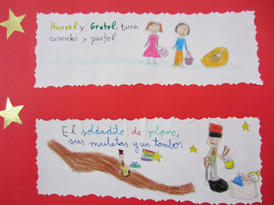 Os comento cómo lo trabajé: primero, lo leímos. Luego, hice dos grupos de niños/as, para que cada grupo hiciera una poesía completa. A cada grupo le dí un trocito, haciendo que coincidiera con estrofas más o menos independientes, y cada uno/a copió e ilustró su trocito. Luego montamos los dos poemas, cada uno en una cartulina grande. Este es uno de ellos: